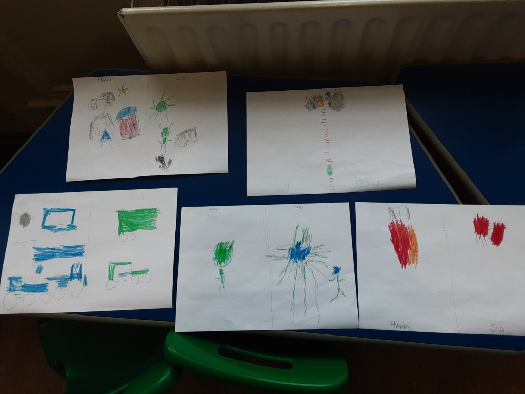 Have a look at these fab pictures by our P1 children who expressed the things that make them feel happy and sad.